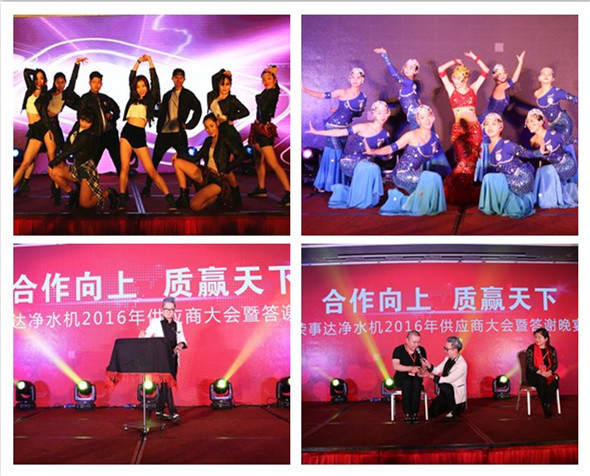 在答謝晚宴上,榮事達為遠道而來的供應(yīng)商企業(yè)代表準備了精彩紛呈的文藝表演,炫酷十足的燈光秀、火辣勁爆的街舞開場表演點燃了現(xiàn)場氣氛,曼妙唯美的舞蹈《年年有余》贏得觀眾一片叫好,妙趣橫生的魔術(shù)互動表演將整臺晚會氣氛推向高潮。歡樂抽獎環(huán)節(jié)更是驚喜不斷,榮事達空氣凈化器等精美大獎悉數(shù)送出。