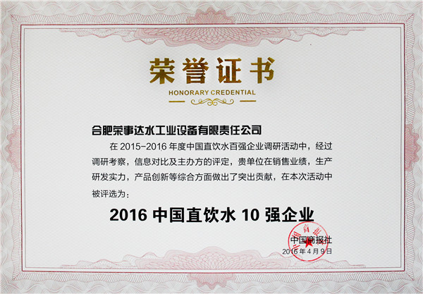 評審委員會由主辦方領(lǐng)導、凈水行業(yè)專家、戰(zhàn)略媒體、行業(yè)媒體、第三方調(diào)研機構(gòu)及消費者代表組成,用國際通行方式,歷時三個多月,依據(jù)中國商報研究院發(fā)布的權(quán)威、公正,有影響力的凈水企業(yè)調(diào)研報告,綜合考慮消費者對于品牌的認知度、忠誠度及美譽度,評選出包括美的、3M等在內(nèi)的百強企業(yè),榮事達名列前茅,榮獲“中國直飲水10強企業(yè)”、“消費者信賴企業(yè)”、“中國凈水行業(yè)十佳服務(wù)商”、“消費者滿意品牌”多項大獎。