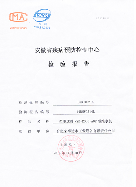 RSD-RO50-A02型純水機(jī)檢驗(yàn)報(bào)...