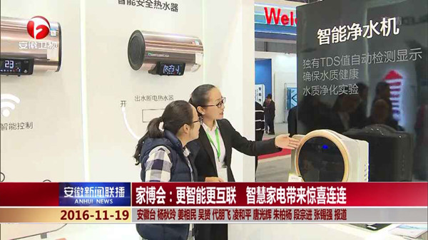 •         11月19日晚18時30分,《安徽新聞聯播》節目播出新聞《更智能更互聯  智慧家電帶來驚喜連連》,榮事達凈水機在第十屆家博會上大放異彩,作為智能互聯化產品典型代表,接受安徽衛視專訪。