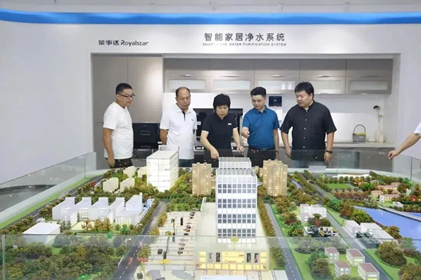 領導一行先后參觀了榮事達智能化生產車間和智慧水世界展廳,了解榮事達企業綜合實力及十大水處理系統具體發展狀況,現場體驗了企業最新研發定制產品與自主開發的物聯網校園智慧管理系統,并為榮事達行業領先的技術實力點贊。
