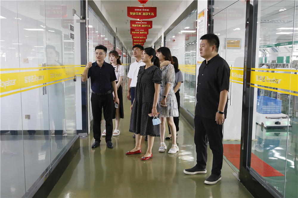 一行領(lǐng)導(dǎo)先后參觀了榮事達智能化生產(chǎn)車間和智慧水世界展廳,了解榮事達企業(yè)綜合實力及十大水處理產(chǎn)業(yè)具體發(fā)展狀況,現(xiàn)場體驗了企業(yè)最新研發(fā)定制產(chǎn)品與自主開發(fā)的物聯(lián)網(wǎng)校園智慧管理系統(tǒng),并為榮事達行業(yè)領(lǐng)先的技術(shù)實力點贊。