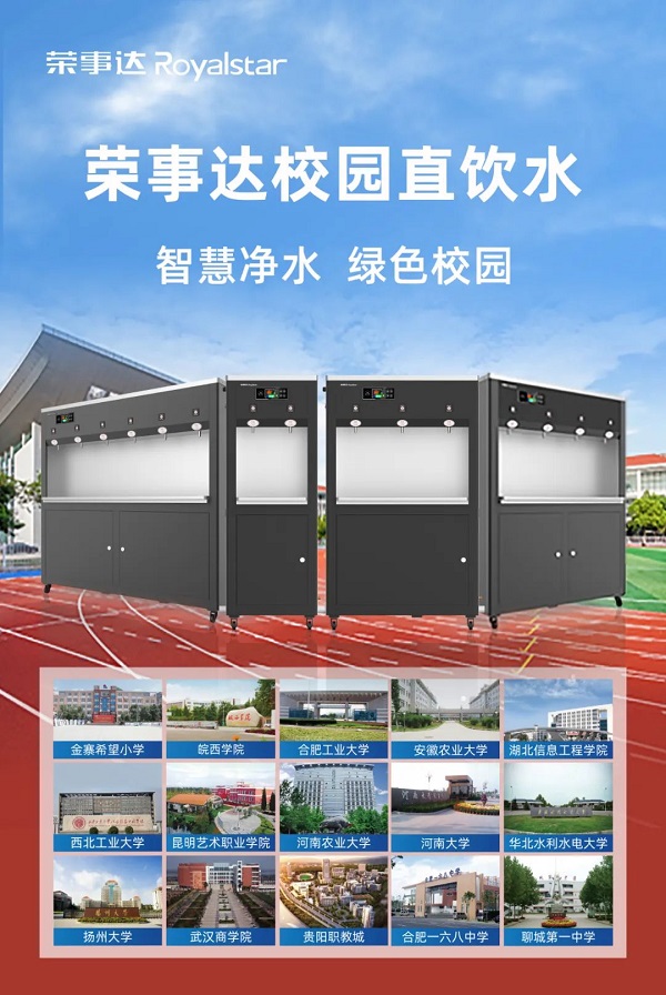 榮事達水工業長期以來一直致力于校園直飲水工程建設,憑借新設計、新模式、新服務等領航業界,不僅被國家教育部校園飲水工作組多次評估、調研,還在多項大型校園直飲水工程投標中脫穎而出。