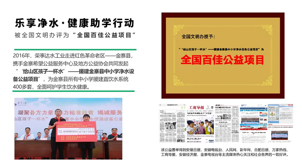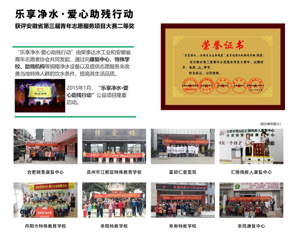 榮事達(dá)水工業(yè)公司積極投身于公益事業(yè),其公益行動(dòng)廣泛覆蓋健康助學(xué)、愛(ài)心助殘、精準(zhǔn)扶貧及鄉(xiāng)村振興等多個(gè)領(lǐng)域,公益的足跡遍布全國(guó)。公司用實(shí)際行動(dòng)踐行社會(huì)責(zé)任,彰顯企業(yè)擔(dān)當(dāng),贏得了社會(huì)各界的廣泛贊譽(yù)。