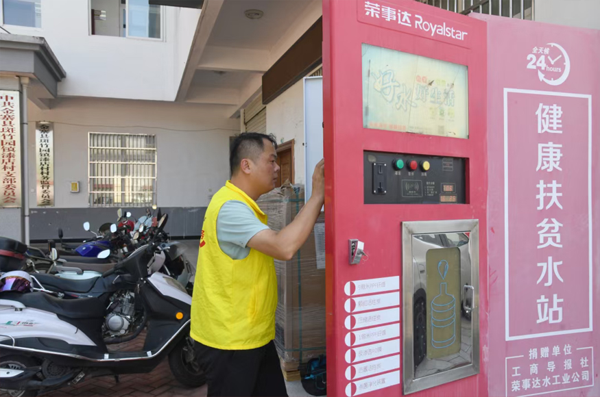 活動中,榮事達水工業(yè)黨支部發(fā)揮自身技術優(yōu)勢,組織專業(yè)維修團隊對此前捐贈給該村的凈水設備進行了全面檢修保養(yǎng),并免費更換了濾芯。這些凈水設備是榮事達水工業(yè)公司特別定制的產(chǎn)品,具備24小時自助供水功能,采用多級過濾凈化技術,能有效濾除水中的雜質、細菌、農(nóng)藥、化肥及重金屬等有害物質,確保出水達到直飲標準。