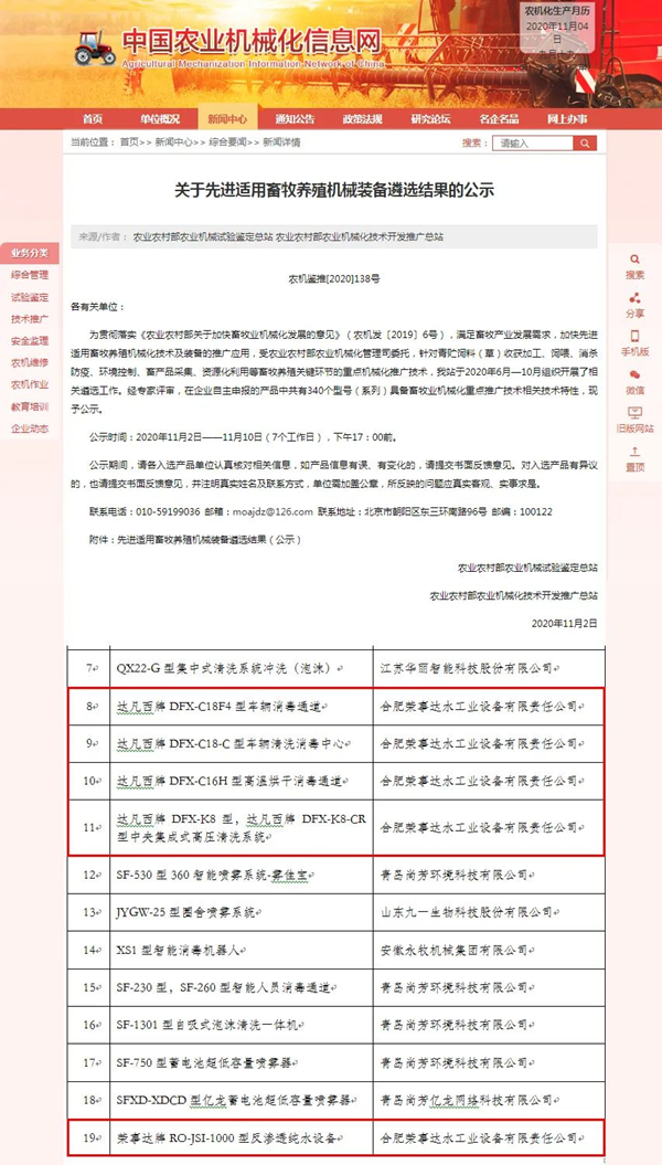 重磅!榮事達反滲透純水設(shè)備、防疫洗消設(shè)備成功入選國家農(nóng)業(yè)農(nóng)村部先進適用畜牧養(yǎng)殖機械裝備遴選名單