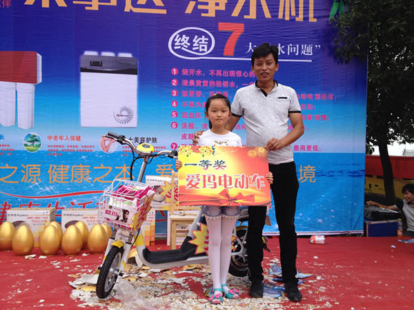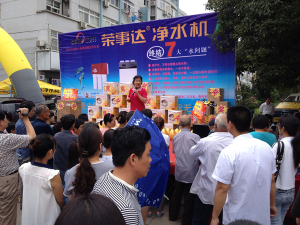 為打開市場、推廣產品,蕪湖管理中心舉辦了多次市場活動。7月5日,榮事達凈水機“送健康 進萬家”感恩回饋活動在蕪湖市三山區順利舉行,現場人氣爆棚。消費者購機不但能享受價格優惠,還能砸金蛋抽大獎?;顒赢斕欤F場成交凈水機達34臺,電動車、洗衣機等大獎均被抽出。
