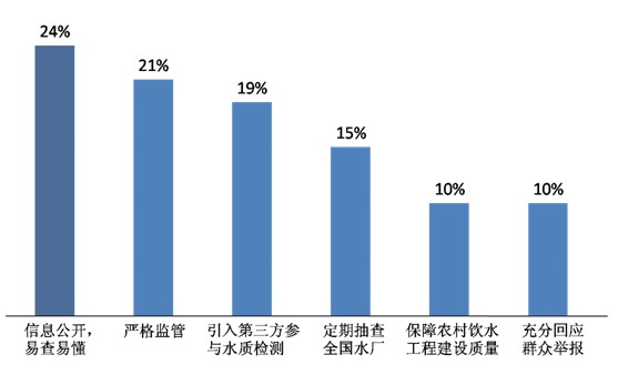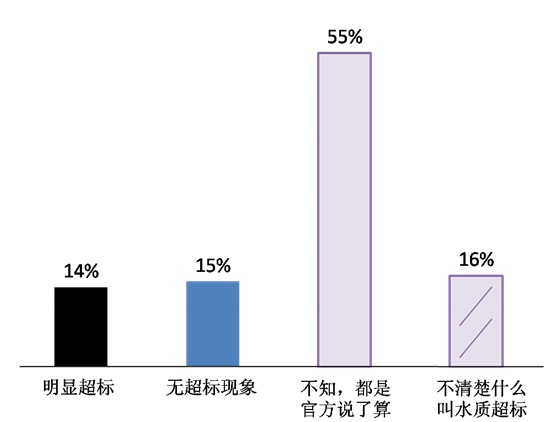 - 飲水安全,與每一個人的健康息息相關環保部不久前發布的《2013中國環境狀況公報》顯示,我國水污染狀況令人憂慮:對長江、黃河、珠江等十大水系的斷面監測顯示,黃河、松花江、淮河和遼河水質輕度污染,海河為中度污染,而27.8%的湖泊(水庫)呈富營養狀態。生活中,百姓切身感受到的飲水安全問題如何?2014年6月至8月,半月談社情民意調查中心開展了“水杯里的民生:講講您身邊的生活用水”網絡調查,圍繞水污染程度、污染源、百姓環境權與認知,對政府的期盼等問題,與網友進行交流,收集有效樣本1315個。被訪者中,36%居住在城市,32%在縣城,21%來自鄉鎮,11%在農村。六成被訪者憂飲水不安全,飲水消費正成為居家“開門第八件事”——污染程度:六成被訪者對所住地區自來水的水質表示不滿,其中多數人的感受是“不太好,湊合喝吧”(27%),明顯感覺到“有異味”的有17%,感覺“水堿多”的為19%。對水質表示滿意的人很少,占全體被訪者的16%,其中15%覺得“水質還可以”,只有1%覺得“水質很好”。圖1. 對所住地區自來水的直觀感受另外有兩成(21%)被訪者表示“不清楚,喝不出好壞”——百姓飲用水成本越來越高,為了水杯里的安全,多數人選擇水消費:購買桶裝水、安裝自來水凈化器、從小區凈水機打水成為主流選擇,購買安全飲水正為成百姓居家繼“柴米油鹽醬醋茶”之后的“開門第八件事”。六成(59%)被訪者平時飲用水的最主要來源是“自來水/井水(燒開)”。也有不少人購買桶裝水(19%)或是從小區凈水機打水(8%)來飲用。“家里安裝自來水凈化器”的被訪者也不少,為11%。圖2. 家庭飲用水的主要來源工礦產業、農藥化肥、生活污水成百姓飲水安全三大“攔路虎”本次調查分別向被訪者所感受到的城市鄉村的水污染情況進行了解,其中重點調查了百姓認識到的本地水污染的源頭。——污染源:城市水污染主要與產業結構有關,工業排放(29%)和“礦業污染”(11%)對水資源的污染占到四成。值得關注的是,“城市污水”污染被24%被訪者認為其是主要污染源。蘭州水污染事件讓人們注意到了“輸水管道被污染”對水安全造成的影響,15%被訪者認為自己所住城市的水污染受此影響。有專家分析水污染,認為“草根、藻類等腐殖質”是主要原因之一,被訪者中6%接受這一看法。圖3. 居住在城市的受訪者對所住市縣污染源的認知認為所住城市水資源“無污染”的幾乎沒有——在農村,近半數被訪者認為危害水安全的是“生活垃圾、污水”(25%)和“農藥、化肥”(23%),比例遠超“工業排放”(16%)和“礦業污染”(8%),農村亦存在不少“輸水管道被污染”從而污染水資源的現象(8%),極少數被訪者表示所居住的鄉村水資源“無污染”(1%)。圖4. 居住在鄉村的受訪者對污染源的感受水安全信息“后知后覺”,百姓健康權利被透支本次調查的結果,體現出了水污染的嚴重程度、最主要的污染源等問題,然而比這些問題更值得關注的現象,是人們對攸關家人健康的環境信息的“后知后覺”、獲取水環境信息時的困難。據環保部今年3月14日發布的研究結果顯示,全國2.8億居民飲用水存在不安全問題。但是,當我們問到“據您所知,所住地區是否有飲用水超標現象”時,并沒能直接得到關于百姓身邊飲用水超標程度的認知結果,數據呈現的是人們對“飲用水水超標”問題的無奈。——對于“水杯里的飲水安全”,只有不到三成的被訪者給了我們“明顯超標”(14%)或“沒有超標現象”(15%)的明確答案。七成被訪者對此一片茫然:55%被訪者表示“不知道,超不超標都是官方說了算”,16%的人甚至“不清楚什么叫水質超標”。圖5. 對所住地區飲用水水質超標現象的感受我國劃分了飲用水水源的一級、二級保護區?!吨腥A人民共和國水污染防治法》規定,在一級保護區內,禁止與供水設施和保護水源無關的建設項目;二級保護區內,禁止排放污染物的建設項目。——對“飲用水水源保護區”這一攸關群眾飲水安全和健康權的規定,只有兩成群眾表示“了解”,并明確地告訴我們“有違建項目”(18%)或“無違建項目”(4%)。八成被訪者對此并不知曉,29%的人“從沒聽說過”,也并沒有想要了解的意愿。半數(49%)被訪者“想了解”,但無奈于“信息不透明,無法得知”。圖6. 對所住地區“飲用水水源保護區”保護情況的了解本次調查同時詢問了被訪者對一些水安全知識的認知相對而言,人們對一些科普、知識性的信息認知度較高,“過量、不合理使用化肥、農藥是水污染源之一”已經較為廣泛地被人們所了解(23%);不少人也清楚“汞、砷等有毒物超標的水即使只是洗手也會對人體有害”(15%),即使是“生產一張A4紙所需要的水資源約10升”這樣的“冷知識”,也有一定被訪者有所了解(4%)。——對于自己在水安全方面,有哪些權利、如何維護等問題,人們有所了解,但人數比例較低。例如17%知道“渾濁度、異味等感官性狀,也屬于國家規定的水質檢測指標”,而只有9%的人知道“想了解水質檢測有哪些指標,可查詢《生活飲用水安全標準》”;在維權方面,14%被訪者知道“受害人有權要求排污方排除危害、賠償損失”,8%知道“公眾可以依法向水質檢測部門申請檢測數據”,“目前全國有30個地級以上城市可撥打12320舉報水污染事件”,但只有3%的被訪者了解這一點,6%的被訪者對上述我們所提出的水安全知識表示“一概不